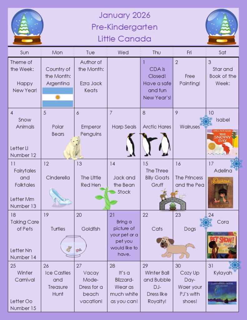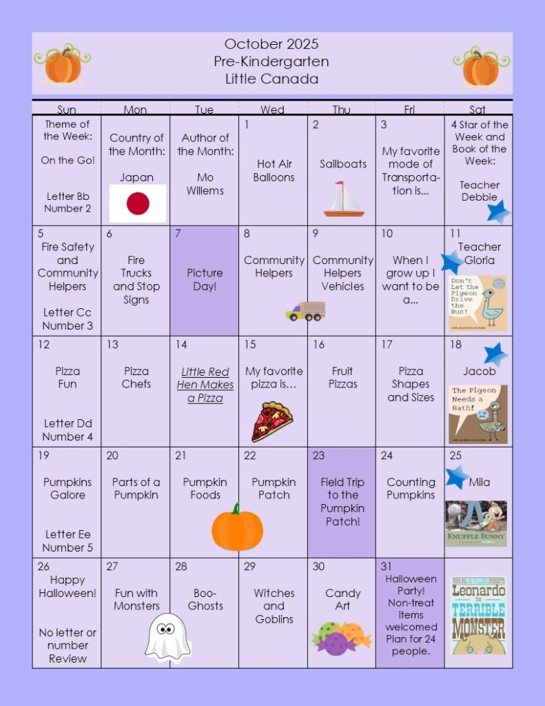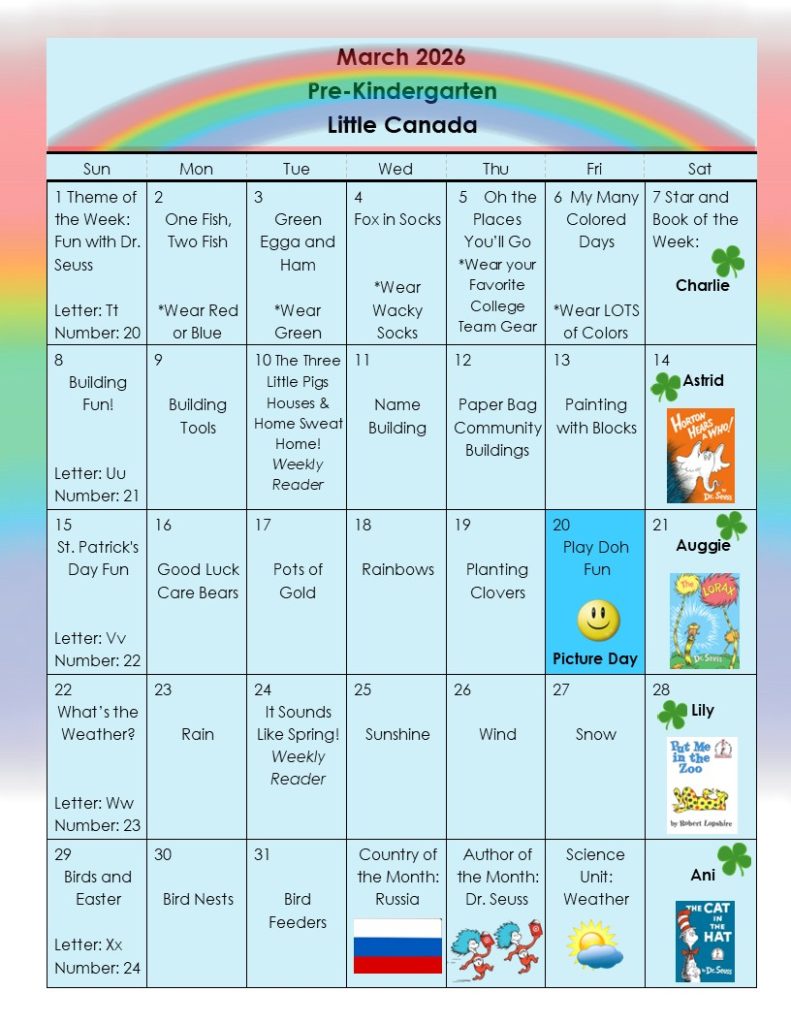 Pre-Kindergarten Calendar
