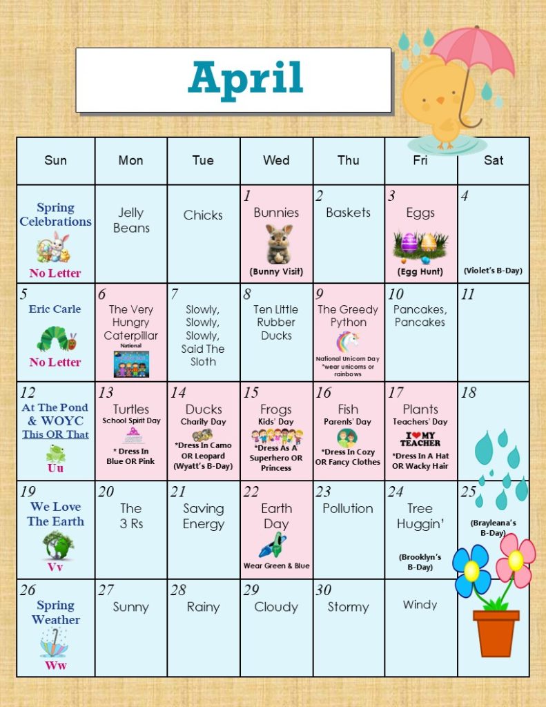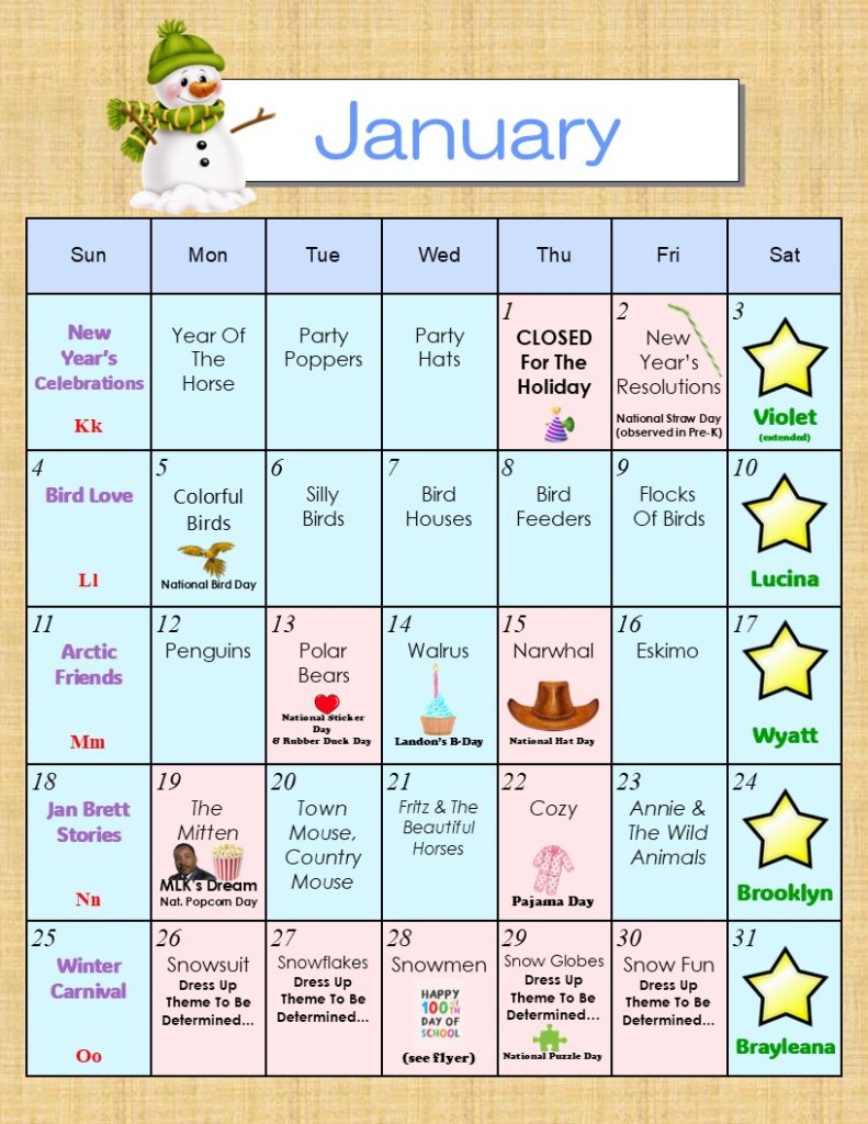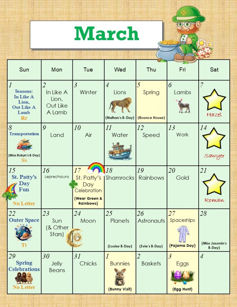 Preschool B Calendar VH